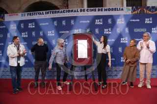 MORELIA, MICHOACÁN, 19OCTUBRE2024. Liv Tyler, Rodrigo Prieto, Daniela Michel y Alejandro Ramírez durante la develación de placa que conmemora a lo jurados y ganadores de la edición pasada del FICM, como parte de las actividades del 22° Festival Internacional de Cine de Morelia. FOTO: EDGAR NEGRETE LIRA/CUARTOSCURO.COM