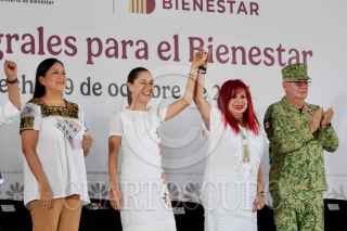 ESCÁRCEGA, CAMPECHE, 19OCTUBRE2024.- Claudia Sheinbaum, presidenta de México, encabezó el evento protocolario para la presentación de los programas integrales para el bienestar del estado de Campeche. FOTO: PRESIDENCIA/CUARTOSCURO.COM