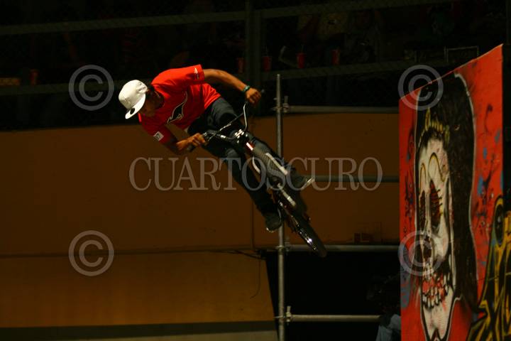 MÉXICO,D,F.,08SEPTIEMBRE2007.-Dentro de las eliminatorias de BMX street los competidores desarrollaron sus mejores trucos en el X games México desarollados en el Palacio de los Deportes. FOTO:SASHENKA GUTIERREZ/CUARTOSCURO.COM