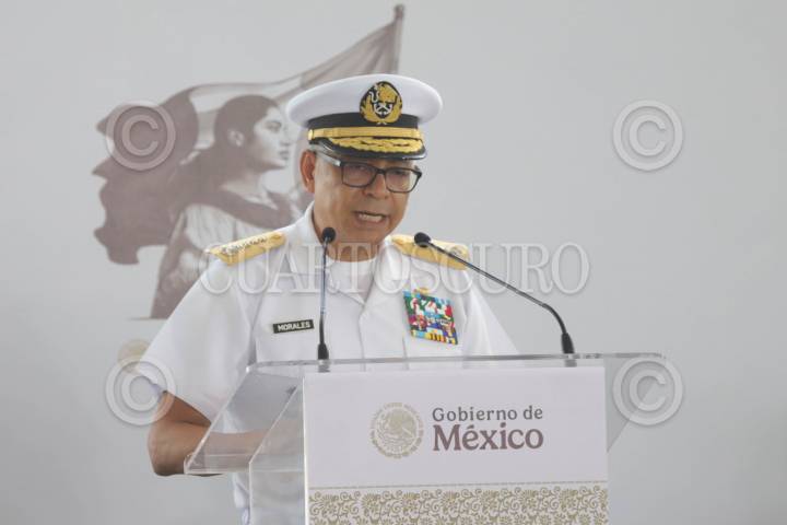 PROGRESO, YUCATÁN, 20OCTUBRE2024.- Raymundo Pedro Morales Ángeles, secretario de Marina, durante la entrega de Pensiones Mujeres Bienestar y firmó el convenio de la Pensión Universal para Personas con Discapacidad, en la Unidad Deportiva Progreso. FOTO: MARTÍN ZETINA/CUARTOSCURO.COM