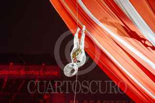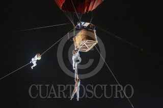 MONTERREY, NUEVO LEÓN, 20OCTUBRE2024.- Se presentó el espectáculo circense “EXIT” de la compañía francesa Cirque Inextremiste en la explanada de los Héroes. Los acróbatas realizaron el show en un globo aerostático de 3400 metros cúbicos como parte de la inauguración del Festival Internacional Santa Lucía 2024. FOTO: GABRIELA PÉREZ MONTIEL / CUARTOSCURO.COM