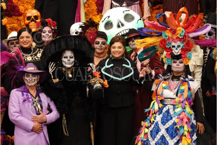CIUDAD DE MÉXICO, 21OCTUBRE2024.- Clara Brugada, jefa de Gobierno, encabezó la conferencia en donde presentó el programa de Día de Muertos realizada en el Museo de la Ciudad de México. FOTO: GRACIELA LÓPEZ/CUARTOSCURO.COM