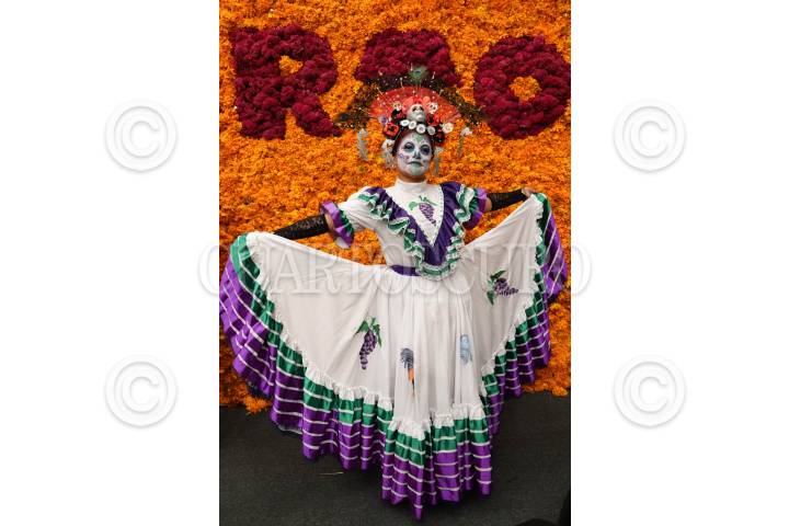 CIUDAD DE MÉXICO, 21OCTUBRE2024.- Catrina durante la conferencia en donde presentó el programa de Día de Muertos en el Museo de la Ciudad de México. FOTO: GRACIELA LÓPEZ/CUARTOSCURO.COM