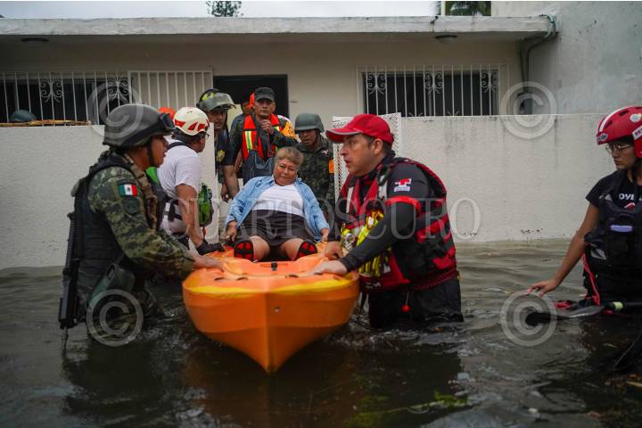 BOCA DEL RIO, VERACRUZ, 21OCTUBRE2024.- Este lunes se registraron intensas lluvias en la zona conurbada Veracruz-Boca del Río, que provocaron diversas afectaciones, por lo que la Secretaría de Marina informó que se activó el Plan Marina en fase de auxilio, para desalojar a personas que se encontraban atrapadas en la colonia "El floresta" y otros puntos de la ciudad. FOTO: VICTORIA RAZO/CUARTOSCURO.COM