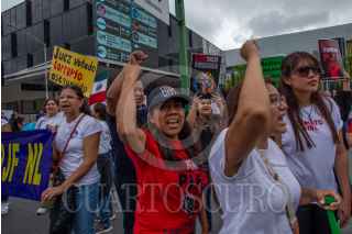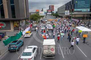 MONTERREY, NUEVO LEÓN, 22OCTUBRE2024.- Trabajadores del Poder Judicial en el estado de Nuevo León protestan en contra de la Reforma Judicial, en las afueras del Centro Internacional de Negocios (CINTERMEX). FOTO: GABRIELA PÉREZ MONTIEL / CUARTOSCURO.COM