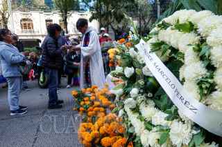CIUDAD DE MÉXICO, 22OCTUBRE2024.- Colectivos de organizaciones sociales y en pro de los Derechos Humanos realizaron una misa y ofrenda en honor al defensor y luchador social Padre Marcelo Pérez, asesinado el pasado domingo 20 de octubre en su natal Chiapas. Las y los inconformes colocaron veladoras, flores de cempasúchil, así como una corona de flores blancas para hacer un llamado a las autoridades a no cerrarles la puerta y a trabajar directamente con ellos. De igual manera, llamaron a la sociedad civil a salir a manifestar el próximo 30 de octubre en las inmediaciones del Ángel de la Independencia. FOTO: GALO CAÑAS/CUARTOSCURO.COM