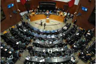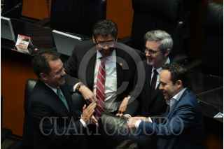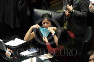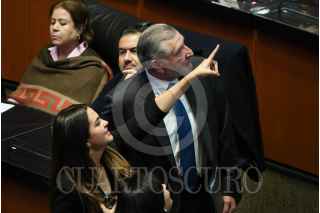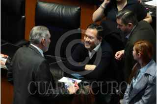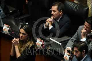 CIUDAD DE MÉXICO, 22OCTUBRE2025.- Los senadores Ignacio Mier y Andrea Chávez durante la Sesión Ordinaria en el Senado de la República. FOTO: GRACIELA LÓPEZ/CUARTOSCURO.COM