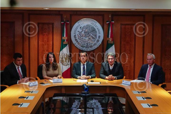 CIUDAD DE MÉXICO, 22OCTUBRE2024.- Sergio Gutiérrez Luna, Ricardo Monreal, encabezaron la reunión con Blanca Ochoa, Francisco Gonzales y Gabriel Regis jueces de distrito en la sala de juntas de la Cámara de Diputados. FOTO: ROGELIO MORALES /CUARTOSCURO.COM