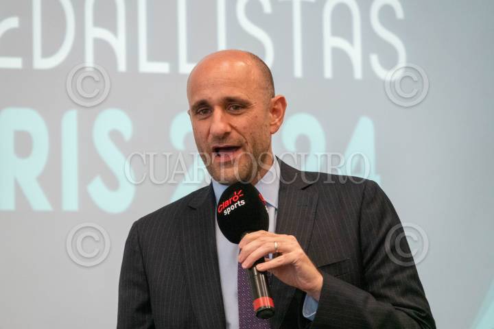 CIUDAD DE MÉXICO, 22OCTUBRE2024.- El periodista Alberto Lati fue el conductor de la ceremonia en donde Fundación Telmex Telcel les entregó apoyos económicos a los medallistas de los Juegos Olímpicos y Paralímpicos de París. FOTO: MOISÉS PABLO/CUARTOSCURO.COM