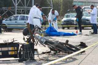 CIUDAD DE MÉXICO, 22OCTUBRE2024.- Un trailero mata co su pesada unidad a un ciclista en avenida Frutas y Legumbres de la Central de Abastos. El responsable se dio a la fuga. FOTO: ROGELIO MORALES/CUARTOSCURO.COM