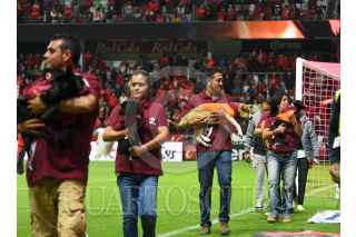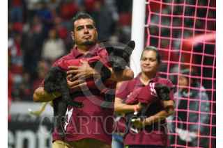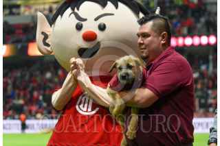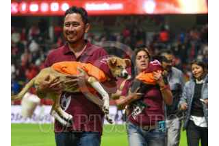 TOLUCA, ESTADO DE MÉXICO, 22OCTUBRE2024.- Durante el medio tiempo del encuentro entre los Diablos de Toluca y Puebla, CEPANAF promovió la adopción canica mostrando algunos perritos en la cancha de el estadio Nemesio Diez. FOTO: CRISANTA ESPINOSA AGUILAR /CUARTOSCURO.COM