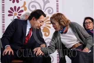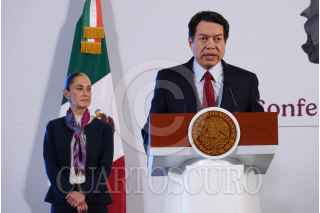 CIUDAD DE MÉXICO, 23OCTUBRE2024.- Mario Delgado, secretario de Educación Pública, y Rosaura Ruíz Gutiérrez, secretaria de Ciencia Humanidades, Tecnología e Innovación, conversaron durante la conferencia "La Mañanera del Pueblo", realizada en el Salón de Tesorería en Palacio Nacional. FOTO: GRACIELA LÓPEZ/CUARTOSCURO.COM
