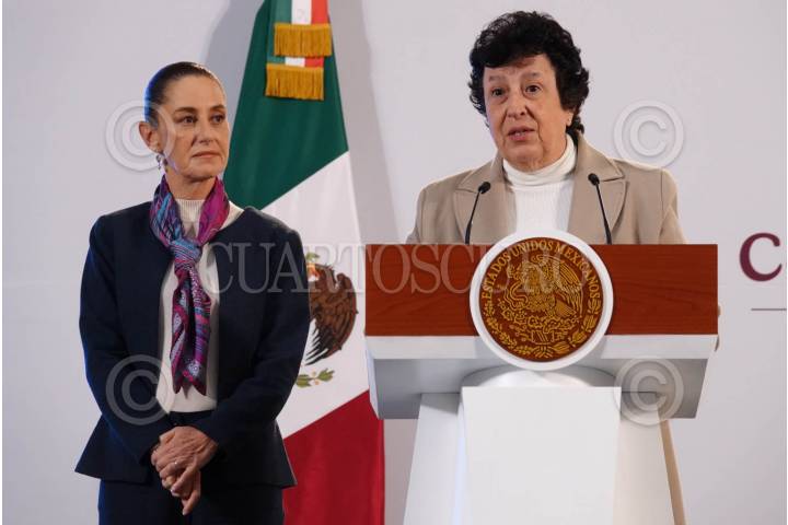 CIUDAD DE MÉXICO, 23OCTUBRE2024.- Raquel Sosa Elízaga, directora general de las Universidades para el Bienestar "Benito Juárez", acompañada de Claudia Sheinbaum, presidenta constitucional de los Estados Unidos Mexicanos, durante su participación en la conferencia "La Mañanera del Pueblo", realizada en el Salón de Tesorería en Palacio Nacional. FOTO: GRACIELA LÓPEZ/CUARTOSCURO.COM