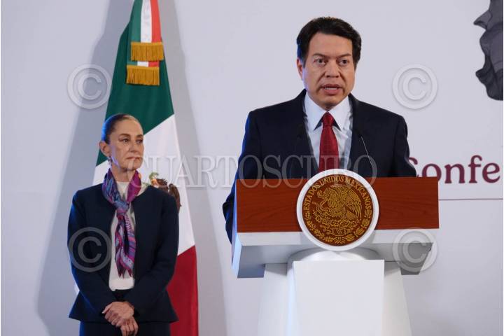 CIUDAD DE MÉXICO, 23OCTUBRE2024.- Mario Delgado, secretario de Educación Pública, acompañado de Claudia Sheinbaum, presidenta constitucional de los Estados Unidos Mexicanos, durante su participación en la conferencia "La Mañanera del Pueblo", realizada en el Salón de Tesorería en Palacio Nacional. FOTO: GRACIELA LÓPEZ/CUARTOSCURO.COM