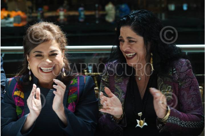 CIUDAD DE MÉXICO, 23OCTUBRE2024.- Clara Brugada, jefa de Gobierno, y Alejandra Frausto, secretaria de Turismo, conversaron durante la Instalación del Comité Organizador de la Copa del Mundo 2026 realizada en el Hotel Cardenal. FOTO: GRACIELA LÓPEZ/CUARTOSCURO.COM