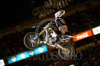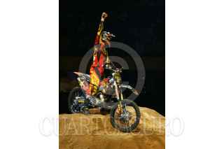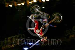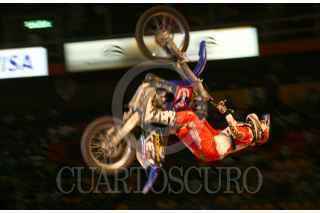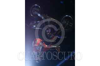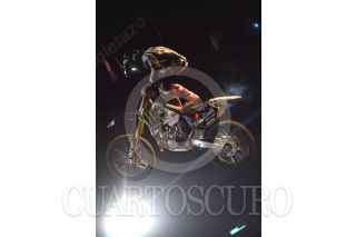 MÉXICO,D,F.,08SEPTIEMBRE2007.-Todd Potter primer celebra su victoria después de haber realizado su rutinade la competencia en motocross categoria trick en el palacio de los deportes. FOTO:SASHENKA GUTIERREZ/CUARTOSCURO.COM