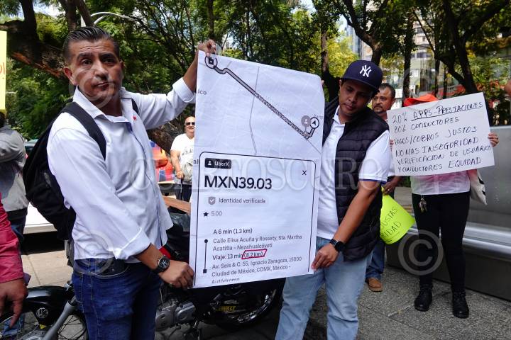 CIUDAD DE MÉXICO, 23OCTUBRE2024.- Trabajadores de las plataformas Didi y Uber realizaron un mitin frente al Ángel de Independencia con el objetivo de dar a conocer la problemática entre las empresas con sus empleadores. Así mismo los trabajadores acudieron a las oficinas de las plataformas para solicitar reuniones con personal de las empresas. FOTO: ROGELIO MORALES /CUARTOSCURO.COM