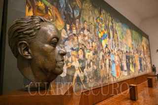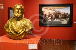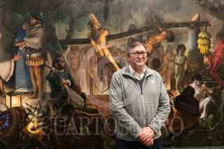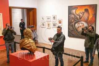 CIUDAD DE MÉXICO, 22OCTUBRE2024.- Luis Rius Caso explica la exposición Sobre los huesos de Cuauhtémoc y de Hernán Cortés, en el Museo Diego Rivera, ahí señaló que en ella se explora "una herida abierta" y un "debate vivo" sobre la mexicanidad, al revivir, entre otras polémicas, el hallazgo de los huesos de Cuauhtémoc y Hernán Cortés. El curador indicó que la exposición retoma el debate de los años 50 sobre la mexicanidad, concepto que reconoce las culturas indígenas que existían antes de la llegada de los españoles y la inevitable fusión que ocurrió después de la conquista. La exposición, que reúne 96 obras entre óleos, documentos, grabados, objetos y esculturas, abrirá al público desde mañana jueves hasta el 16 de febrero de 2025. FOTO: MOISÉS PABLO/CUARTOSCURO.COM