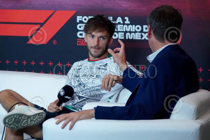 CIUDAD DE MÉXICO, 24OCTUBRE2024.- El piloto de la escudería BWT Alpine Pierre Gasly durante la conferencia de pilotos en el marco del primer día de actividad del Gran Premio de la Ciudad de México que se celebra en el Autódromo Hermanos Rodríguez. FOTO: GALO CAÑAS/CUARTOSCURO.COM