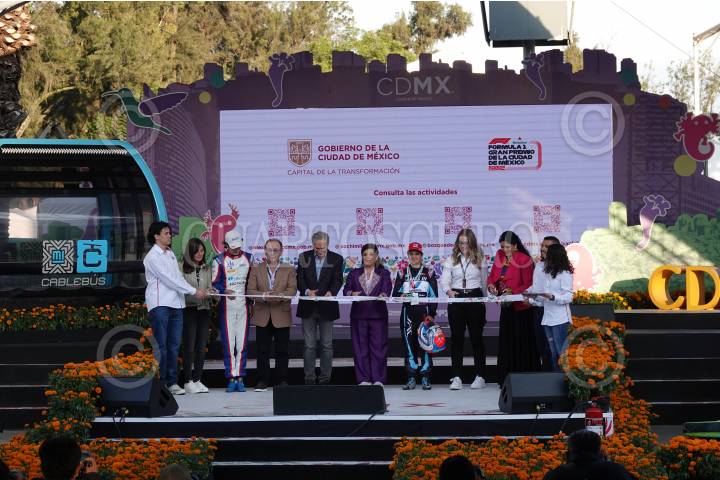 CIUDAD DE MÉXICO, 24OCTUBRE2024.- Clara Brugada, jefa de gobierno de la Ciudad de México, encabezó el corte de listón de la Ciudad de México en las inmediaciones del Autódromo Hermanos Rodríguez de cara a la celebración del Gran Premio de la Ciudad de México de la Fórmula 1. FOTO: GALO CAÑAS/CUARTOSCURO.COM