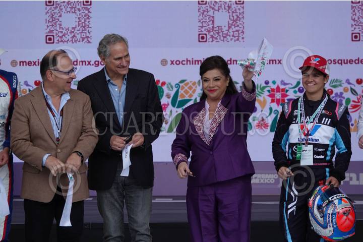 CIUDAD DE MÉXICO, 24OCTUBRE2024.- Clara Brugada, jefa de gobierno de la Ciudad de México, encabezó el corte de listón de la Ciudad de México en las inmediaciones del Autódromo Hermanos Rodríguez de cara a la celebración del Gran Premio de la Ciudad de México de la Fórmula 1. FOTO: GALO CAÑAS/CUARTOSCURO.COM