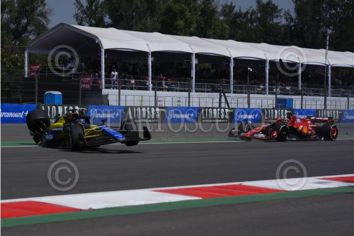 CIUDAD DE MÉXICO, 24OCTUBRE2024.- El piloto de la escuderia William Racing, Alex Alban se estrello contra el auto de la escudería Ferrari que conducía Oliver Bearman durante la primer práctica del Gran Premio de la Ciudad de México en el Autódromo Hermanos Rodríguez. FOTO: GALO CAÑAS/CUARTOSCURO.COM