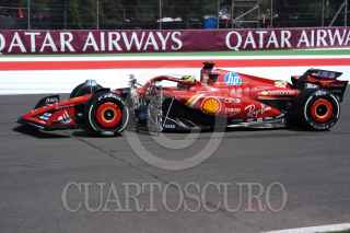 CIUDAD DE MÉXICO, 24OCTUBRE2024.- El piloto de la escuderia Ferrari, Carlos Sainz, durante la primer práctica del Gran Premio de la Ciudad de México en el Autódromo Hermanos Rodríguez. FOTO: GALO CAÑAS/CUARTOSCURO.COM