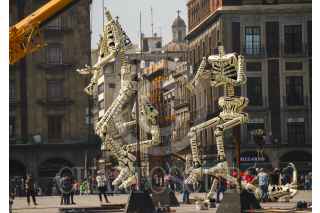 CIUDAD DE MÉXICO. 25OCTUBRE2024.- Trabajo de la Mega Ofrenda que se instalará en el Zócalo de la Ciudad. Disfraces máscaras, todo tipo de objetos para la celebración de día de muertos. FOTO: VICTORIA VALTIERRA/CUARTOSCURO.COM