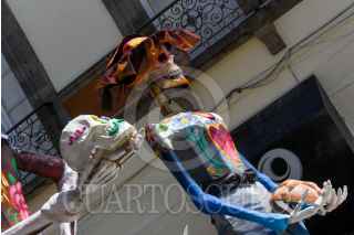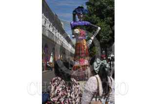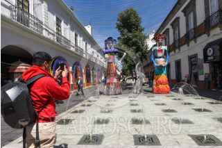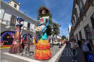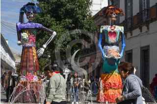 TOLUCA, ESTADO DE MÉXICO, 25OCTUBRE 2024.- Dos catrinas gigantes recibe a los visitantes de los Portales de Toluca, que disfrutan en esta temporada de la Feria del Alfeñique. FOTO: CRISANTA ESPINOSA AGUILAR /CUARTOSCURO.COM
