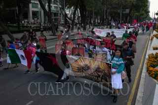 CIUDAD DE MÉXICO, 26OCTUBRE2024.- Familiares, activistas y estudiantes marcharon saliendo del Ángel de la Independencia al Hemiciclo a Juárez esto en protesta de la de la desaparición forzada de 43 normalistas de Ayotzinapa en Iguala Guerrero. FOTO: ROGELIO MORALES /CUARTOSCURO.COM