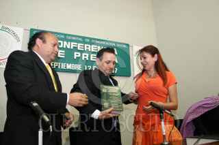 MÉXICO D.F. 12SEPTIEMBRE2007.-El ex general Franciso Gallardo Rodríguez realizo la presentación de su tesis doctoral ¨En Busca de una Nueva Relación Civil-Militar en México¨ en las instalaciones de la Cámara de Diputados.En la imágen es acompañado por los diputados David Sánchez del PRD y Laida Sensores, del partido Convergencia. FOTO: GUILLERMO PEREA/CUARTOSCURO.COM
