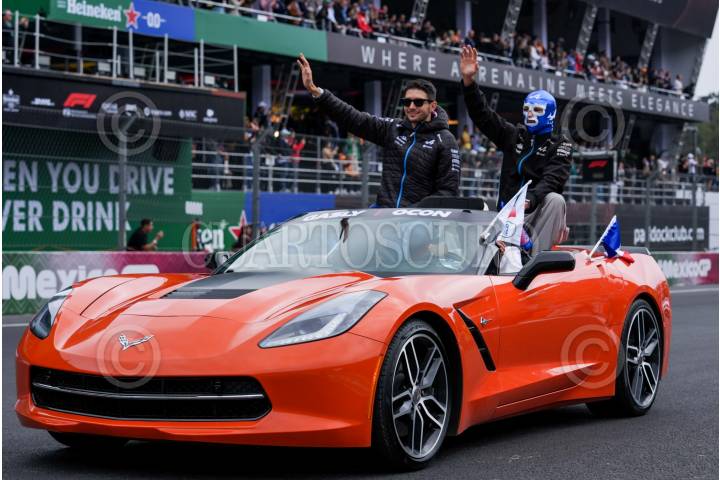 CIUDAD DE MÉXICO, 27OCTUBRE2024.- Los pilotos de BWT Alpine Pierre Gasly y Esteban Occon durante el Desfile de las escuderías que compiten en la edición 2024 del Gran Premio de la Ciudad de México de la Fórmula 1 en el Autódromo Hermanos Rodríguez. FOTO: GALO CAÑAS/CUARTOSCURO.COM