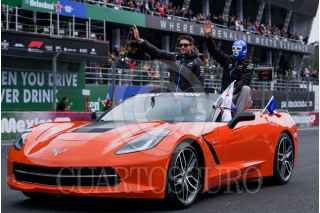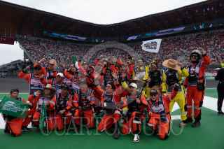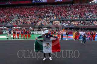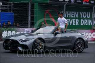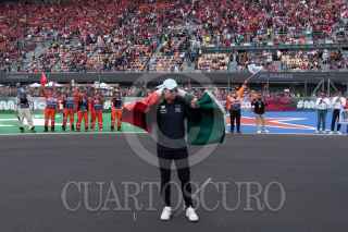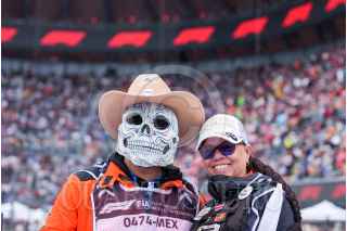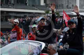 CIUDAD DE MÉXICO, 27OCTUBRE2024.- Auxiliares del Gran Premio de la Ciudad de México de la Fórmula 1 posan tras el desfile de pilotos en las inmediaciones del Autódromo Hermanos Rodríguez FOTO: GALO CAÑAS/CUARTOSCURO.COM