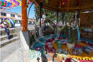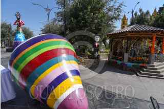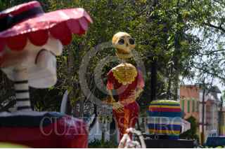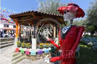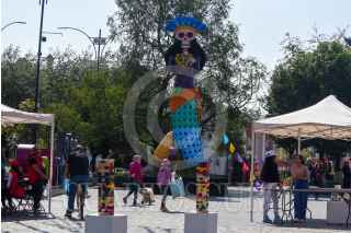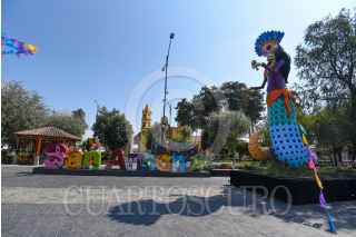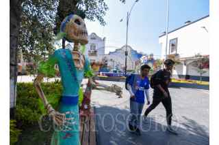 SAN ANTONIO LA ISLA, ESTADO DE MÉXICO, 27OCTUBRE2024.- Como parte de los festejos de Día de Muertos Catrinas Gigantes fueron instaladas en la plaza principal de San Antonio la Isla. FOTO: CRISANTA ESPINOSA AGUILAR /CUARTOSCURO.COM