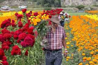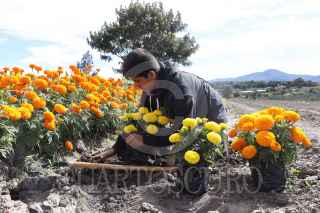 SAN PABLO VILLA DE MITLA, OAXACA, 27OCTUBRE2024.- Floricultores de la agencia Unión Zapata, perteneciente a San Pablo Villa de Mitla, se pararan para cosechar las variedades de flor de cempasúchil y cresta de gallo que este año adornarán los altares de Día de Muertos. Decenas de hectáreas fueron cultivadas en esta comunidad zapoteca que también recibe a visitantes para que disfruten de los campos floridos y adquieran productos. FOTO: CAROLINA JIMÉNEZ/ CUARTOSCURO.COM