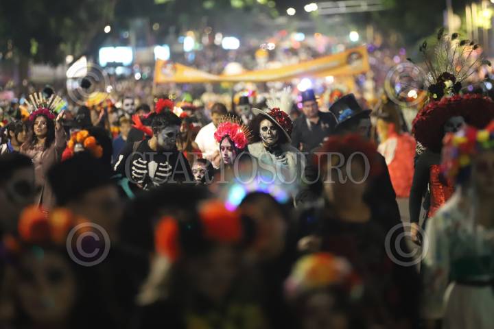 CIUDAD DE MÉXICO, 27OCTUBRE2024.- Miles de personas participaron en la Procesión de Catrinas de este año, la cual partió del Ángel de la Independencia rumbo al Zócalo. FOTO: DANIEL AUGUSTO/ CUARTOSCURO.COM
