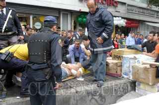 MEXÍCO, D.F., 12SEPTIEMBRE2007.-Tras una riña entre vendedores Ambulantes del Eje Central y Madero, uno de ellos salio gravemente herido con 4 Puñaladas, socorristas lo trasladaron aun hospital. FOTO:PEDRO MARRUFO/CUARTOSCURO.COM