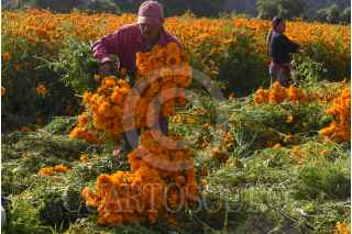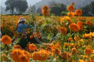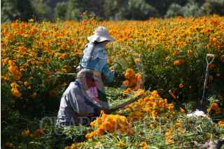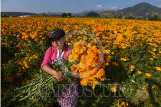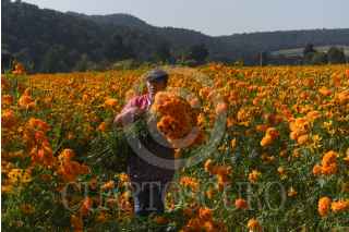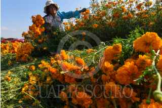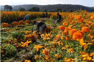 TENANGO DEL VALLE, ESTADO DE MÉXICO, 28OCTUBRE2024.- Mujeres y hombres desde muy temprana hora se encuentran trabajando en el corte de flor de cempasúchil en los campos de San Francisco Putla en el municipio de Tenango del Valle, que se viste de colores durante esta época; la flor de cempasúchil es un elemento esencial en la celebración de Día de Muertos, ya que viste y da color a las ofrendas que son instaladas en los hogares, y también se ha convertido en un ingrediente para la gastronomía mexicana. FOTO: CRISANTA ESPINOSA AGUILAR /CUARTOSCURO.COM