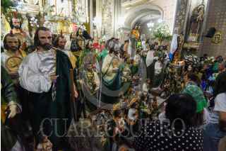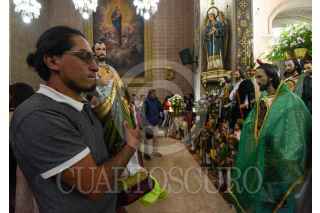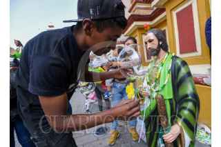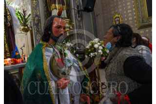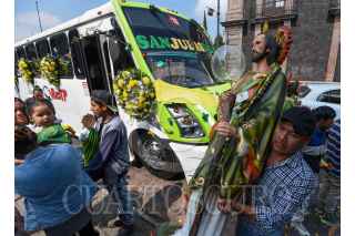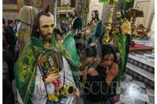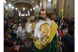 TOLUCA, ESTADO DE MÉXICO, 28OCTUBRE2024.- Cientos de personas acudieron a la Iglesia de la Santa Veracruz en Toluca para celebrar a San Judas Tadeo, imágenes de todos tamaños desfilaron por el lugar para escuchar misa y ser bendecidos, agradeciendo por todos los favores recibidos y pedir por un mejor año a su Santo Patrono. FOTO: CRISANTA ESPINOSA AGUILAR /CUARTOSCURO.COM