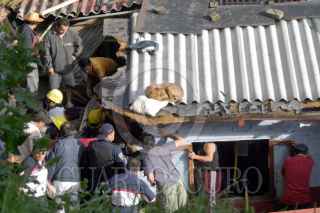 MEXÍCO. D.F. 12SEPTIEMBRE2007.-En la colonia Belen de las Flores parte de un cerro se desmorono gracias a un deslave callendo sobre una vivienda, socorristas y bomberos rercataron a un hombre de entre los escombros el cual fue trasladado en helicoptero a un hospital en el cual fallecio al llegar. FOTO:PEDRO MARRUFO/CUARTOSCURO.COM