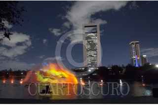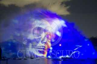 MONTERREY, NUEVO LEÓN, 28OCTUBRE2024.- Se llevó a cabo la proyección "La leyenda del MIctlán" en el Lago de las olas del paseo Santa Lucía. El espectáculo, ambientada en el Día de los Muertos, presenta los nueve niveles del MIctlán con desafíos y guardianes, diseñada por Laser Wantum con agua, láseres y videoproyecciones como parte de las actividades del Festival Internacional Santa Lucía 2024. FOTO: GABRIELA PÉREZ MONTIEL / CUARTOSCURO.COM