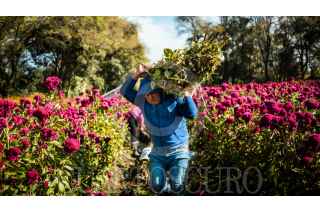 TEPEYANCO, TLAXCALA. 29OCTUBRE2024.- En los campos de esta región, un grupo de personas conocidas como "Los Ivanes" se dedican a cultivar y cosechar la flor de terciopelo, también conocida como cresta de gallo, un elemento indispensable en las ofrendas del Día de Muertos. FOTO: ALAIN HERNÁNDEZ/CUARTOSCURO.COM