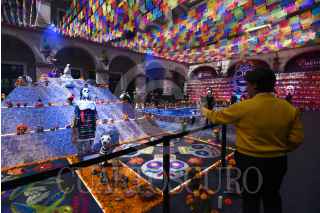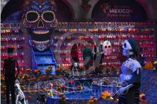 TOLUCA, ESTADO DE MÉXICO, 29OCTUBRE2024.- Instalan ofrenda Monumental en Palacio de Gobierno, en esta ocasión la instalación rinde un homenaje a las diferentes etnias del Estado de México como la Matlazinca, Otomí, Mazahua, Tlahuica y Nahua, también a las mascotas, perros y gatos y buscando rescatar y preservar nuestras raíces prehispánicas, estará abierta al público del 28 de octubre al 4 de noviembre. FOTO: CRISANTA ESPINOSA AGUILAR /CUARTOSCURO.COM