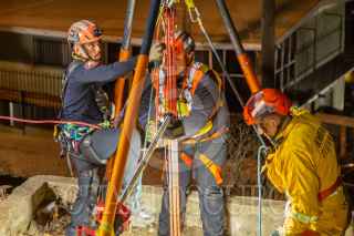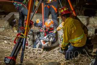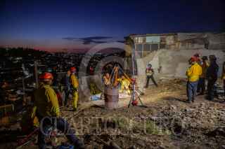 TIJUANA BAJA CALIFORNIA, 29OCTUBRE2024.-Bomberos realizando maniobras. Tras trabajar por poco más de dos horas, elementos del cuerpo de bomberos lograron rescatar con éxito a un perro que llevaba atrapado varios días en el fondo de un pozo de alrededor de 20 metros de profundidad. Vecinos de la colonia Obrera fueron quienes, alrededor de las 5:00 de la tarde notificaron a las autoridades que habian escuchado ruidos en un pozo ubicado sobre la calle Pípila y en el fondo había un perro atrapado.A pesar de la poca visibilidad y el poco espacio, alrededor de 13 bomberos y un elemento de Protección Civil, se prepararon con equipo especial para realizar las maniobras de rescate. Gracias al arduo trabajo en equipo de los héroes de la ciudad, lograron sacar sano y salvo al perrito, alrededor de las 7:00 de la noche, el cual salió corriendo desesperadamente tras volver a sentir la libertad.FOTO: CHRIS NOYOLA/CUARTOSCURO.COM