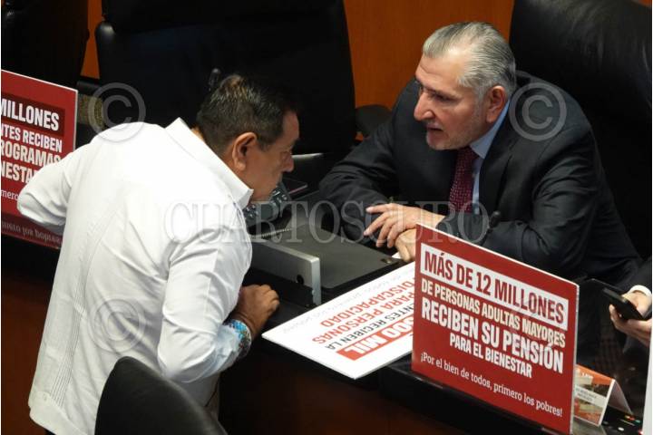 CIUDAD DE MÉXICO, 30OCTUBRE2024.- Los senadores Félix Salgado Macedonio y Adán Augusto conversaron durante la Sesión Ordinaria de la Reforma y adiciones a los artículos 4 y 133 de la Constitución Política en materia de bienestar. FOTO: GRACIELA LÓPEZ/CUARTOSCURO.COM