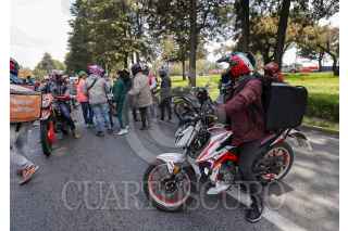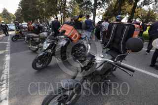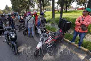 TOLUCA, ESTADO DE MÉXICO, 30OCTUBRE2024.- Repartidores de DiDi y Uber bloquearon Paseo Tollocan con sus motocicletas en rechazo al proyecto de ley laboral impulsado por el Gobierno Federal, en donde se establece que tendrían una jornada laboral de 48 horas semanales, lo que consideran les afectaría. FOTO: CRISANTA ESPINOSA AGUILAR /CUARTOSCURO.COM