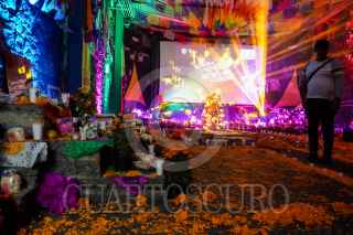 CIUDAD DE MÉXICO, 30OCTUBRE2024.- Familiares, vecinos e integrantes del Instituto de la Juventud (INJUVE) realizaron la instalación de una ofrenda con motivo del Día de los Fieles Difuntos en las inmediaciones del Memorial New’s Divine, hecho en el que murieron 12 personas en junio 2008. Las fotografías de los adolescentes fueron colocadas entre flores de cempasúchil y veladoras. FOTO: GALO CAÑAS/CUARTOSCURO.COM