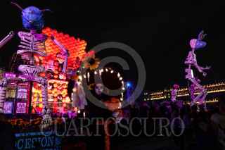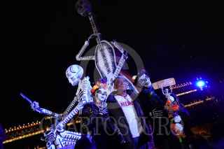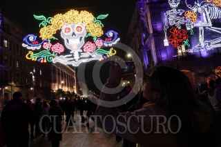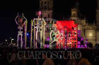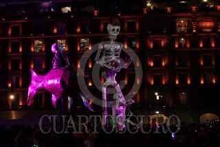 CIUDAD DE MÉXICO, 30OCTUBRE2024.- Clara Brugada, jefa de Gobierno de la Ciudad de México, encabezó la inauguración de la Mega Ofrenda Monumental en la Plancha del Zócalo capitalino. Consta de 21 piezas de cartonería monumental que van de los seis a los diez pies de altura. FOTO: GALO CAÑAS/CUARTOSCURO.COM