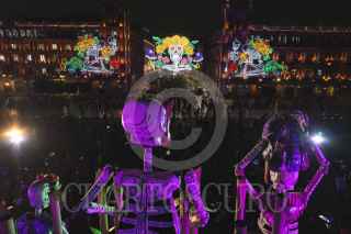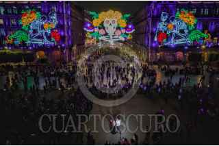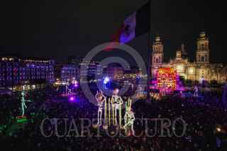 CIUDAD DE MÉXICO, 30OCTUBRE2024.- Clara Brugada, Jefa de Gobierno, encabezó el encendido de Día de Muertos en el Zócalo capitalino, que lució abarrotado de personas que querían admirar el espectáculo. FOTO: GOBIERNO DE LA CIUDAD DE MÉXICO/CUARTOSCURO.COM