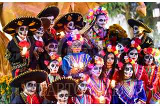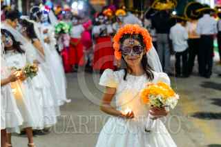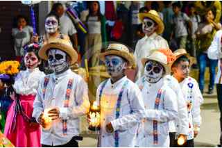 TLAPA, GUERRERO, 31OCTUBRE2024.- Cientos de niños de diferentes escuelas del municipio de Tlapa de Comonfort, en la región de la Montaña de Guerrero, participaron en una procesión de catrinas y catrines, en conmemoración al Día de Muertos. FOTO: CARLOS ALBERTO CARBAJAL/CUARTOSCURO.COM